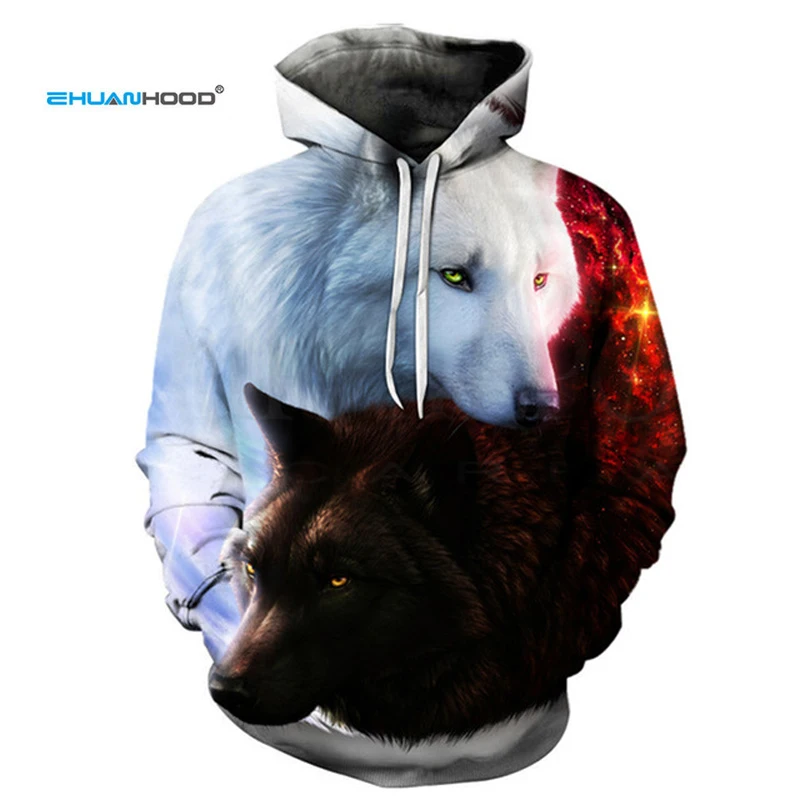 المنتجات ذات الصلة ل Hoodies و EHUANHOOD الساخن بيع العلامة التجارية الذئب 3D هوديي الرجال البلوز الرجال النساء هوديس زائد حجم البلوز الجدة 3XL عارضة الحيوان معاطف